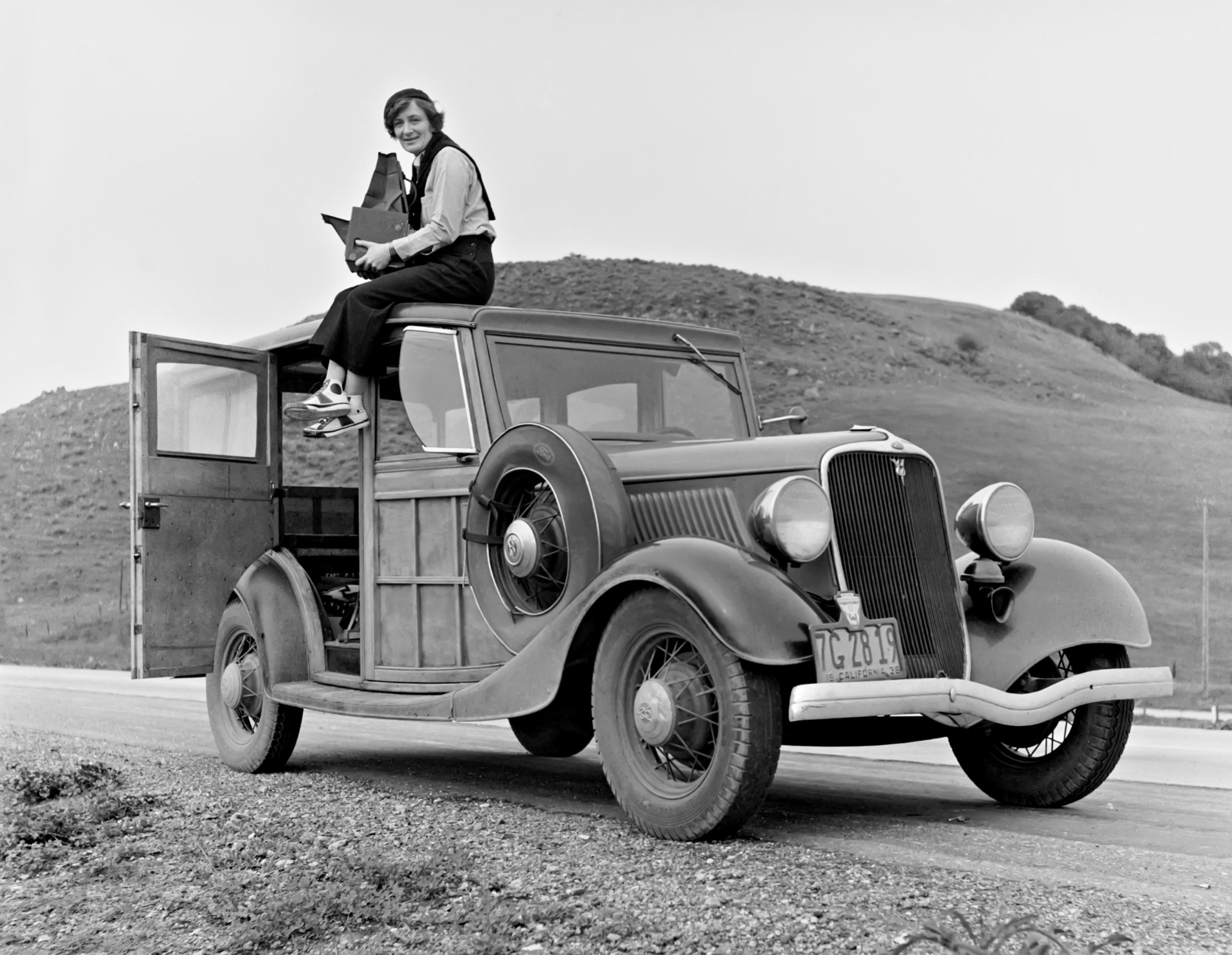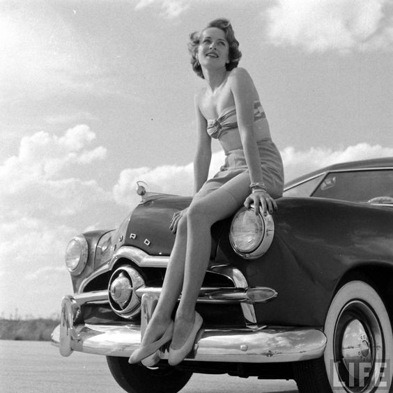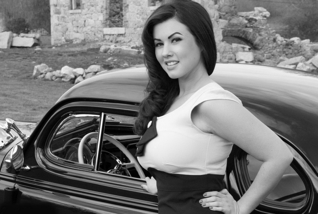 Vintage Photos of Girls with Cars in Black and White